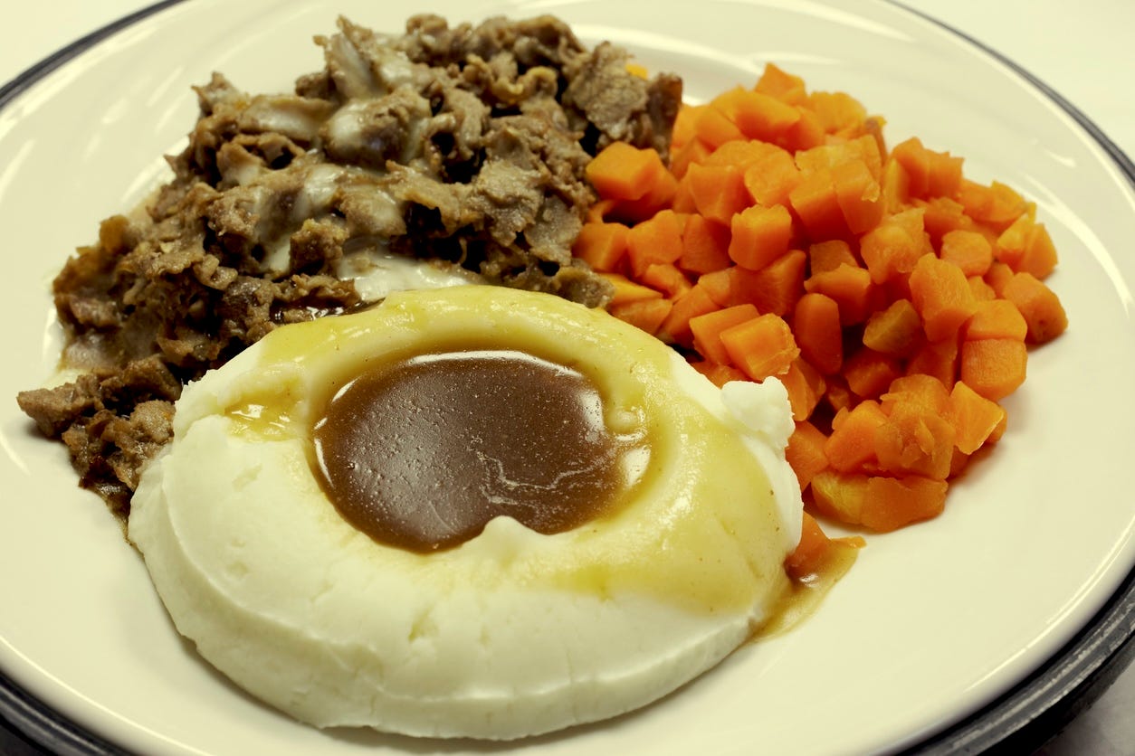 An orderly brings in a tray. He opens the lid so that Alex and the assembled can look inside. Down on the beige plastic plate, its edges scarred by hospital flatware and industrial soap, a brown-black blob exhales.